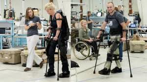 e-legs, the lightweight battery powered exoskeleton, which gives paraplegics new legs, and gets them out of the wheelchair and walking onto their feet. The exoskeleton consists of a robotic frame controlled through crutches. The crutches contain sensors; putting forward the right crutch moves the left leg, and vise versa. The eLEGS battery can enable a user to walk for one day before it needs to be recharged, according to the product’s developer Berkeley Bionics,